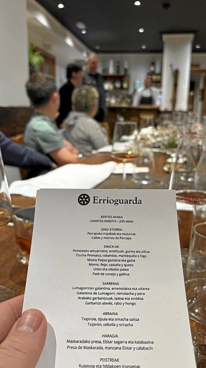 2025 AZA. 16 GASTROTEKA Errioguarda homenajea a sus productores Los productores locales son un eslabón imprescindible para la calidad y la buena marcha de la gastronomía. Recientemente, Errioguarda, restaurante ubicado en Hernani, homenajeó a sus productores, sentándolos junto a sus invitados para disfrutar de sus productos. Los asistentes a la cena ofrecida en Errioguarda disfrutaron de un menú y un ambiente excelentes. (Javi Rivero) Javi Rivero {{^data.noClicksRemaining}} Artikulu hau irakurtzeko erregistratu doan edo harpidetu Dagoeneko erregistratuta edo harpideduna? Saioa hasi ERREGISTRATU IRAKURTZEKO {{/data.noClicksRemaining}} {{#data.noClicksRemaining}} Klikik gabe gelditu zara Harpidetu {{/data.noClicksRemaining}} Quienes lleváis conmigo algún tiempo, sabéis algunas de las dificultades o retos que puede tener el gestionar un negocio propio. Os he ido contando alguna que otra cosilla al respecto. Y qué decir de los que lleváis conmigo, los domingos, aquí, desde 2020. Vosotros me conocéis casi mejor que mi madre. AMA, mi proyecto de vida, no mi madre, nació en 2018. Desde entonces no ha habido un año “tranquilo”. Los ha habido buenos, no tan buenos, mediocres, malos y uno, muy malo. Sabíamos, o creíamos que sabíamos, dónde nos metíamos y hemos apechugado hasta el día de hoy. Y, para durar, estando como están las cosas, casi 8 años después la pasión es uno de los ingredientes más importantes, la clave. Mientras las ganas de hacer las cosas bien y con sentido, con propósito y todo esto se mantengan firmes, los nuevos proyectos vivirán y cambiarán el mundo. Recuerdo perfectamente a compañeros con los que iniciamos la andadura gastronómica casi a la par. Antonio Belloti, de casa 887; Unai y Matheu, de MAUN grill bar; Aitor de Ikili (antes Bide bide en Tolosa); y muchos más que hoy siguen en marcha, dando guerra y llevando buen género a la mesa. Estos son la generación a la que pertenezco. Una generación que defiende el buen producto, el territorio y a las personas. Seguimos remando en la misma dirección, pero junto a los que ya estábamos se han unido con fuerza una serie de proyectos con un brillo especial en los ojos, para los que las personas son el eje sobre el que todo gira. Porque en nuestro entorno más cercano, cuando hablamos de historia, hablamos de personas, cuando mencionamos producto, nos quedamos con los productores y, cuando definimos nuestra casa, intentamos hablar de una familia unida que defiende una idea. Siempre con las personas en el centro, esta última generación comparte una fuerza fuera de serie, una naturalidad, un brillo en la mirada y un sentido común que no hace falta que sea reivindicado. Los valores y las personas son la base sobre la que se construyen proyectos como Errioguarda, Muina, Alboka, Urbare, Etxemaite, Milalore, Erre… y muchos más de los que ya os he hablado. Gente joven haciendo que las personas disfruten de lo mejor que otras pueden dar. Si esto no es humanizar la gastronomía, apaga y vámonos. Estamos pisando un territorio que habla por sí solo. Solo tenemos que escuchar y mirar con pausa para entender dónde estamos. En esto son expertos los que surten y nutren de género de cercanía todas las casas que se mencionan en este artículo. Menu ofrecido en Errioguarda Errioguarda se ubica en Hernani. Ya os he hablado alguna vez de esta casa, en la que Beñat San Sebastián y Santi Vázquez defienden cada vez de forma más radical la cercanía de producto y, como decía, a las personas que están detrás de todos y cada uno de ellos. Muestra de ello es el homenaje al que pude acudir hace un par de semanas, homenaje en el que los productores con los que trabajan compartieron mesa con los invitados. Además, el buen rollo y un ambiente de 10 se vio potenciado por los bertsolaris Onintza Enbeita y Jon Maia, quienes se encargaron de abrir y cerrar la cena con buena rima y humor. El menú contó con varios momentos en los que se contextualizaron los platos. Todo para dar presencia, homenaje y sentido al hecho de que los productores de los productos que íbamos a degustar estuvieran allí mismo. Se merecen mucho más que un aplauso y creo que Beñat y Santi, invitándolos a ver cómo un comedor disfrutaba de su producto, acertaron de lleno. Fue emocionante. PERRAPA BASERRIA A la mesa acudió Ander con su familia. Ander produce carne de ternera en su caserío. Suyos fueron los callos que abrieron el menú. No es la primera vez que me toca arrancar una cena o una comida con callos y os diría que me estoy aficionando al asunto. Los callos pueden ser el nuevo aperitivo de moda. Claro, esto ocurre si los callos están igual de buenos que los que guisaron Beñat y Santi. Con un punto justo de morcilla, que aporta un extra a este guiso con el que uno se quiere untar de arriba a abajo. Creedme, estaban de auténtico escándalo. ¿Lo malo? Quedaba mucho menú y tan solo nos sirvieron dos cucharadas. Me hubiera comido mil. Pero este par de bocados fueron suficientes para dar muestra del buen género que ofrece Perrapa baserria y lo bien que se cocina después en Errioguarda. De escándalo. SIDRERÍA IPARRAGIRRE Se encargaron de la bienvenida sirviendo una “Sidromiel” o “Sagezti”, que estaba para quitarse la txapela. Equilibrio perfecto entre carbónico, dulzor y acidez. Esperaba que la miel hiciera de las suyas y robara algo de protagonismo a la manzana, pero no. La miel, al servicio de la manzana y, como resultado, una bebida fresca, corta en boca, ideal para un menú como el que comimos. Con los callos, maridaje top. TRUJAL ERROIZ Mikel, de Erroiz, ofreció una mini master class sobre la historia de la oliva. Breve, pero muy bien explicada y acompañada de algunas muestras de las mismas que protagonizaban el relato. Terminamos, yo por lo menos, bebiéndome de trago (igual que hacía mi abuelo manchego) el aceite de oliva virgen extra que nos ofreció para la cata. Estaba espectacular. Probablemente, el m