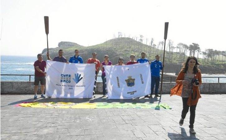 Maddi Ibaibarriaga eta Angel Oiarbide iritsi berriak dira. Idiazabaldik dator Angel, Gure Esku Dago taldeko bozeramailea. Gaztaren jatorri-deituragatik ospetsua den Goierriko herri txiki honetan duela zortzi urte sortutako Nazioen Mundua ekimena izan zen Euskal Herri osora hedatu den Gure Esku Dago erabakitzeko eskubidearen aldeko mugimenduaren aitzindaria. Harrera egiten diete arraunlari batzuek, aurki kargua utziko duen EH Bilduko Lekeitioko alkate Maitane Larraurik, Lekeitioko Gure Esku Dago-ren batzordeko kideak, eta Edriga Aranburu Isuntza arraun elkarteko ordezkariak. Astebete barru jokatzekoa den Gure Esku Dago I. Banderaren ikurra oraindik ez da iritsi. Portugaletetik datorrela? «Azken urteetan Portugaleteko enpresa batek egiten ditu gure bandera guztiak», Edrigak. Baina zenbat estropada egiten dira ba Lekeition? «Ugari, urtero lau bat edo».
