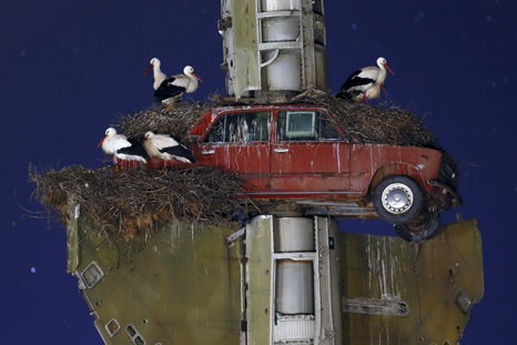 Wolf Vostell alemaniarraren eskultura hau Caceresetik oso gertu dagoen Vostell-Malpartida museoan dago. MiG-21 hegazkin batek, bi autok eta piano batek osatzen dute artelan hau... eta orain hiru zikoinen habiek.