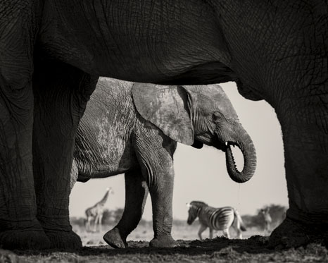 Namibiako Etosha parke nazionaleko putzu baten ondoko lurretan dagoen bunker estu batetik ateratako irudia da hau. Morkelek zuri-beltza erabili zuen nahita, indar berezia eman nahi izan ziolako argazkiaren konposizioari.