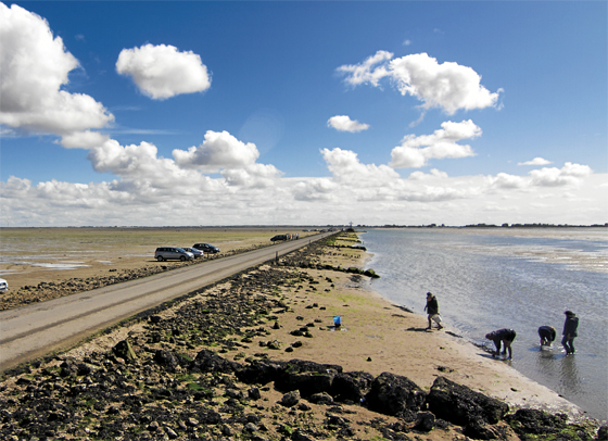 Hiru altxorreko irla. Bidaiaren amaierara helduz, Passage du Gois paradisu orok merezi duen sarrera magikoa da. Igarobide honek Noirmoutier uhartea kontinentearekin lotzen du. Lau kilometroko pista hau egunean birritan desagertzen da itsasgorarekin batera. Familia askok jotzen dute bertara asteburuetan. Itsasbehera denean, errepide inguruko padura lehorrak autoz betetzen dira eta jendeak muskuiluak, txirlak eta ostrak batzen igarotzen du denbora. Euskal Herrian onddo bilketak duen zale kopuruarekin alderatu daiteke. Noirmoutierrek baliabide apartak dauzka bertako klima leun eta eguzkitsuari esker, baina lur azpiko ur geruza ahaztu gabe, itsasoak etengabe elikatzen duena. Paisaia horietan bat egiten dute abereek, errotek, mimosek, basoek, kalek, arrantzale portuek eta ostra hazitegiek. 25 kilometroko luzera izan arren, 6.400 metroko oinezkoentzako ibilbideak eta 8.000 metroko txirrindularitza errepideak dauzka irlak.