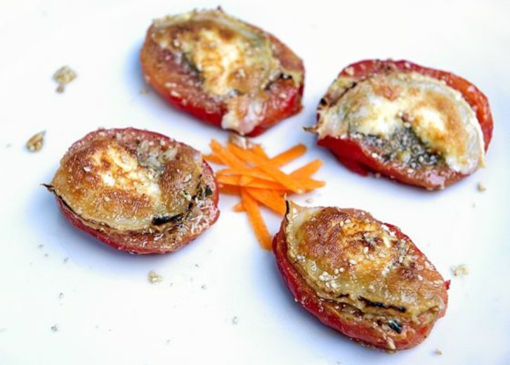 Tomate asado con vinagreta de frutos secos y queso de cabra