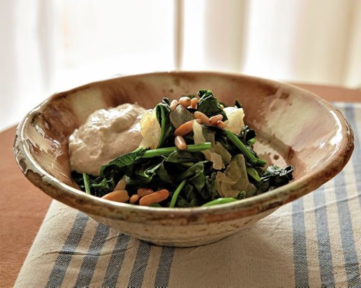 Espinacas con salsa de tahini y yogur