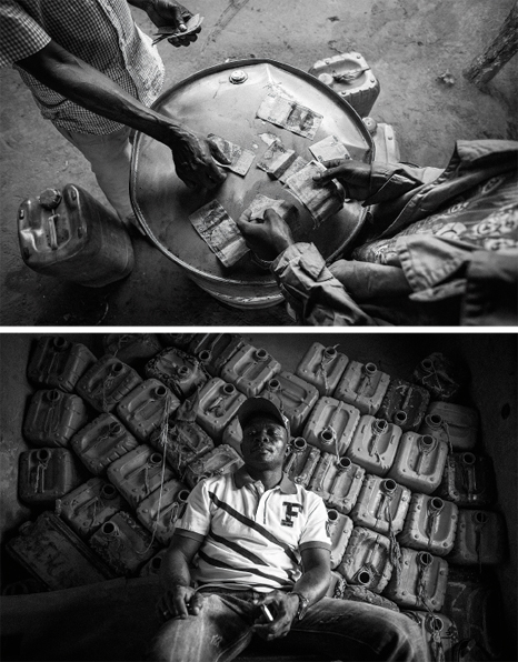 2016 MAI. 15 tráfico ilegal de gasolina El contrabando del «oro líquido» En Benín, una ex colonia francesa situada entre Togo y Nigeria, la distribución ilegal de gasolina es una de las actividades económicas que mueve más dinero en el país. Es un lastre para el Estado, que deja de ingresar más de 200 millones de euros al año. No obstante, las autoridades se encuentran entre la espada y la pared y hacen la vista gorda. Neus Marmol {{^data.noClicksRemaining}} Artikulu hau irakurtzeko erregistratu doan edo harpidetu Dagoeneko erregistratuta edo harpideduna? Saioa hasi ERREGISTRATU IRAKURTZEKO {{/data.noClicksRemaining}} {{#data.noClicksRemaining}} Klikik gabe gelditu zara Harpidetu {{/data.noClicksRemaining}} Desde hace cuarenta años, en Benín existe una vasta red de tráfico ilegal de gasolina desde Nigeria. Esta excolonia francesa situada en el oeste de África, que desemboca en el Golfo de Guinea y hace frontera con Togo al oeste y Nigeria al este, no cuenta con suficientes estaciones para abastecer su territorio. La mayoría han cerrado, porque no pueden hacer frente a la competencia del precio del carburante nigeriano. Nigeria es el primer productor de petróleo en África. En Benín hay solo una gasolinera por cada 20.000 habitantes, según Bio Soulé, economista del Laboratorio de Análisis Regional y Especialización Social (LARES). Soulé explica que en las estaciones el precio del litro de carburante puede llegar a oscilar hasta 40 céntimos de euro –unos 250 francos CFA, la moneda beninesa– más que en el mercado ilegal. El carburante nigeriano llega a Benín por distintas rutas. Los grandes traficantes han diseñado un entramado de rutas que pasan por tierra, vías fluviales y marítimas. Una vez la gasolina llega a territorio beninés, los transportistas reparten los bidones entre los clientes de todas las ciudades y pueblos del país. Para ello, utilizan motocicletas de 100 centímetros cúbicos que cargan con hasta una decena de bidones de entre 15 y 20 litros de capacidad. Se les conoce popularmente como «hombres bomba» o «kamikazes», debido a que cada semana se producen accidentes cuando la gasolina que transportan explota o se incendia. Abiath Oumarou, periodista de la televisión nacional ORTB, explica que en mayo de 2006 se registró un accidente en Cotonou, la ciudad más poblada de Benín, donde viven casi un millón de benineses. Casi un centenar de personas murieron. «Las imágenes que salieron en televisión eran espantosas. No podías ni mirar», se lamenta. Los bidones cargados con gasolina nigeriana llegan a todos los rincones de Benín, cuyas calles están repletas de vendedoras de gasolina a granel. Este trabajo normalmente lo hacen mujeres, mientras los hombres se dedican al transporte. Ellas se instalan en los márgenes de las principales vías con una mesa y decenas de botellas de cristal de distintos tamaños que rellenan con el carburante de contrabando. Hay recipientes de un litro, de cinco y de diez. En una pizarra apuntan con tiza el precio del litro. Cuanto más cerca están de la frontera con Nigeria, más barato es el carburante. Todos los transportistas y las vendedoras a pie de calle responden ante sus patrones, quienes dividen sus zonas de dominio por departamentos, localidades y distritos o barrios. El entramado de tráfico ilegal de gasolina nigeriana en Benín está bien estructurado y sigue una jerarquía muy marcada. «No hay nadie que un día se despierte y diga: ‘voy a vender gasolina en la calle’. No funciona así. Los contrabandistas están bien organizados», argumenta Abiath Oumarou. «Monsieur» Guy Fakeye, coordinador de los traficantes de Kétou y Pobé. Son las doce del mediodía y las calles de tierra rojiza de Kétou, una localidad del departamento de Plateau, están vacías. No se oye a los niños y las niñas, las motocicletas están aparcadas y en las casas no hay nadie. Todos han acudido a la gran fiesta que ha organizado Monsieur Guy Fakeye en las afueras de la población con motivo del funeral de su madre. A lo lejos se oye, casi imperceptible, el repicar de los tambores. Una veintena de hombres están sentados a la mesa que preside Guy Fakeye. Todos visten túnicas estampadas con colores vivos y sombreros de tela a juego con su vestimenta. Se han puesto sus mejores galas para la ocasión. Monsieur Fakeye se encarga de que no falte cerveza, whisky y vino, y ordena a las camareras que no cesen de traer bandejas con comida. A unos diez metros de la mesa presidencial, asan una vaca sobre unos neumáticos. Fakeye presume de que le ha costado 70.000 francos CFA (100 euros), una fortuna para cualquier beninés. Los niños juegan y bailan, y las mujeres del pueblo charlan mientras comen, agrupadas en varias mesas cerca de Fakeye y su séquito. Monsieur Guy Fakeye es el coordinador de los traficantes de Kétou y Pobé, dos localidades situadas en el departamento de Plateau, una de las zonas donde se registra más contrabando por su proximidad con la frontera nigeriana. Bajo su mando trabajan más de un centenar de personas. Fakeye se reúne cada semana con los patrones de sus zonas de dominio, estos precisamente que, durante el opulento banquete, le acompañan a la mesa y le hacen reverencias. «Tengo una oficina donde trabajan trece personas. Allí acordamos el precio del litro de la gasolina con los jefes que están a mi cargo», explica Fakeye. Leon Edoun, uno de los contrabandistas de la localidad de Kétou, añade: «Si algo no funciona, vamos a ver a Guy Fakeye, le damos parte del problema y él nos lo resolverá, tanto si se trata de problemas con el Estado como con los gendarmes o los aduaneros. Lo arreglamos todo entre nosotros. Somos como una familia», apostilla. Jochoua Leoto, uno de los transportistas que trabajan para Leon Edoun y Guy Fakeye y que también ha acudido a la fiesta, lo corrobora: «Cuando he tenido algún problema con la Policía, he llamado a mi patrón y en seguida lo ha soluc