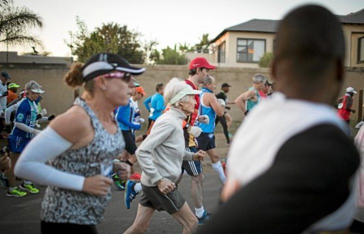Hasta los 78 años la palabra ejercicio no figuraba en el vocabulario de esta profesora de piano afincada en Sudáfrica. Para combatir la osteoporosis le habían prescrito dieta y ejercicio suave (yoga y pilates), pero no iba con ella. Empezó andando tres pasos y corriendo tres y, en solo siete años, lleva acumuladas quinientas medallas. Deirdre Larkin (85 años) ha tomado el relevo a Mavis Hutchison.