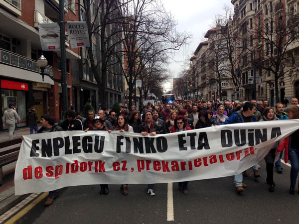 2018 OTS. 18 victorias de la clase trabajadora en euskal herria Los tiempos cambian pero la receta no: organización y lucha obrera En los últimos años, a la sucesión inexorable de malas noticias económicas, con su consecuencia dramática en el ámbito laboral en forma de cierres y despidos, le ha acompañado un discurso tendente a desprestigiar el sindicalismo combativo. La crítica no es nueva, de hecho es casi consustancial a la propia actividad sindical desde sus inicios, pero hay quien está queriendo aprovechar el contexto para minar a las centrales cuyo discurso y práctica no casan con la dócil concertación promovida por gobiernos y patronal. Pelear, dice el soniquete liberal, es malo, pues crea inestabilidad y espanta a los inversores. Sin embargo, la clase trabajadora no ha logrado nada sino a través de la lucha. En este reportaje recogemos ejemplos de que esa máxima sigue siendo real, hoy igual que ayer. Iker Bizkarguenaga {{^data.noClicksRemaining}} Artikulu hau irakurtzeko erregistratu doan edo harpidetu Dagoeneko erregistratuta edo harpideduna? Saioa hasi ERREGISTRATU IRAKURTZEKO {{/data.noClicksRemaining}} {{#data.noClicksRemaining}} Klikik gabe gelditu zara Harpidetu {{/data.noClicksRemaining}} La imagen de las trabajadoras de las residencias de Bizkaia, alegres, exultantes, celebrando en el centro de Bilbo el acuerdo alcanzado después de dos años de batalla y 370 días de huelga, se ha convertido en un icono de la lucha obrera en Euskal Herria. Fue el 27 de octubre cuando aquellas mujeres lanzaron al aire las camisetas verdes que durante tanto tiempo habían vestido en sus movilizaciones. «Era como estar en una nube, no nos lo creíamos. Después de tanta incertidumbre, de tanto tiempo de conflicto sin que nadie nos escuchara… fue una sensación de decir: ¡Por fin se ha terminado, lo hemos conseguido!». Zoa Sáenz de Santamaría, delegada de ELA, resume así lo que vivieron aquel día. Explica a 7K que sabían que iba a ser duro –«eso lo teníamos asumido»–, que iba a ser largo –«porque los otros convenios también se habían alargado»–, pero no esperaban que lo fuera tanto. Y pese a todo, triunfaron. El acuerdo alcanzado con las patronales Gesca, Elbe y Lares recoge el grueso de sus reivindicaciones, como las 35 horas semanales, un salario mínimo de 1.200 euros, mejoras en las coberturas de bajas y una actualización de los pluses. El convenio durará hasta 2020, el incremento salarial se hará mes a mes y la reducción de la jornada también será progresiva, hasta lograr las 35 horas en 2022. Una de las claves para que el desenlace fuera el deseado ha sido «tener muy claros los objetivos». «Antes de iniciar todo esto, nosotras habíamos hecho muchas asambleas y teníamos muy claro que era el momento» de la movilización, evoca Sáenz de Santamaría, apostillando que eran conscientes también de que «había que socializarlo, sacarlo a la calle, que había que explicar a la gente nuestra realidad y la de las familias». Este capítulo, el de la socialización, fue determinante en un conflicto en el que la administración, en este caso la Diputación vizcaina, tomó partido en favor de la parte empresarial, y cuando desde determinados ámbitos se acusó a las trabajadoras de la situación en la que quedaban las personas dependientes y sus allegados. «Se nos acusó de secuestrar a las familias, que es muy fuerte, y lo que nosotras estábamos percibiendo era que quien realmente estaba haciendo daño a las familias y las trabajadoras eran ellos, porque castigándonos a las trabajadoras castigaban a las familias. Ellos estuvieron castigándonos y tratando de invisibilizarnos, y nosotras respondimos socializándolo aún más», expone. Y esa labor la llevaron a cabo con gran éxito; el acuerdo alcanzado en octubre fue celebrado mucho más allá de las personas directamente afectadas, entre otros motivos, porque habían logrado que la ciudadanía congeniara con ellas. «La gente ha estado para quitarse el sombrero. Hemos hecho manifestaciones en las que nos aplaudían desde los balcones… ha habido mucha empatía», corrobora. Como ya se ha dicho, no ha ocurrido lo mismo con la Diputación, responsable última de las residencias. Es más, al parecer de la delegada sindical, las empresas han mantenido una actitud cerril porque se sentían respaldadas. «No tenemos ninguna duda de ello», apostilla. Mucha terapia y muchos cafés. La duración del conflicto en las residencias de Bizkaia no tiene parangón en los últimos tiempos y es equiparable a la que mantuvieron hace unos años en la residencia Ariznabarra de Gasteiz. Sin embargo, las trabajadoras transmitieron en todo momento optimismo y buen rollo a raudales, algo que no tuvo que ser nada fácil. «Ha habido mucha terapia. Es un proceso muy largo, hoy caes tú, mañana yo... hay que estar ahí para animar a la compañera, hay que estar con la gente, tomar muchos cafés. Y ser muy activas», resume Zoa. Y claro, la lógica consecuencia de todo ello es que quienes empezaron siendo compañeras acabaron haciendo piña. «Ahora ya somos una familia. Se han creado muchos lazos, y la verdad es que el principal éxito ha sido ese». Sáenz de Santamaría también incide en la importancia de «tener una organización detrás», y de «la caja de resistencia, que te permite aguantar dos años». Un instrumento, por cierto, que la Hacienda vizcaina ha puesto en el foco de los medios, y no para bien. Otra característica del conflicto de las residencias es que la pelea ha sido protagonizada casi en exclusiva por mujeres, que componen el 98% de la plantilla. Y a juicio de la delegada de ELA, esto ha sido determinante para que la solución se haya alargado en el tiempo. «En este sector –señala–, en el que la Diputación pone 90 millones de todos los vizcainos, nos decían que no era su problema. Nosotras habíamos pedido una reunión por escrito diciendo que nos reuniríamos cuando quisieran, dond