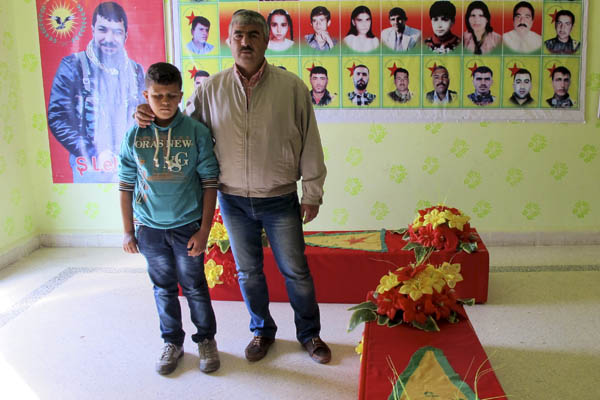 Visitar una zona en crisis pasa por dos visitas ineludibles: el hospital da una idea de los niveles de violencia; la escuela, de la cantidad de gente que ha huido. En noviembre de 2014 la escuela estaba cerrada, pero alguien en el cuartel de la milicia kurda me dijo que quedaba todavía un niño en la ciudad. Lo encontraría en la Asociación de Familias de los Mártires. Media hora más tarde, me hallaba en uno de esos lugares en los que se limpiaban los cadáveres y se los vestía de uniforme antes de meterlos en un ataúd. Las fotos de los caídos locales colgaban de las paredes, y eran sus padres, madres, esposas, hermanos e hijas las que gestionaban el centro. Ali Jalil me señaló el retrato de su hermano. Decía que soñaba con ser periodista hasta que lo mató un francotirador yihadista, en noviembre de 2012. Fue al primero al que enterró, y habían sido unos cuantos desde entonces. Le ayudaba siempre su hijo Diar. Tenía 13 años.