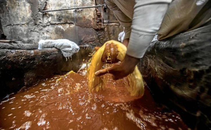 De entre los 23 establecimientos de tinte artesanal que existen en la capital egipcia, la pequeña fábrica de Salama Mahmoud es una de las últimas que sigue funcionando a pleno rendimiento.