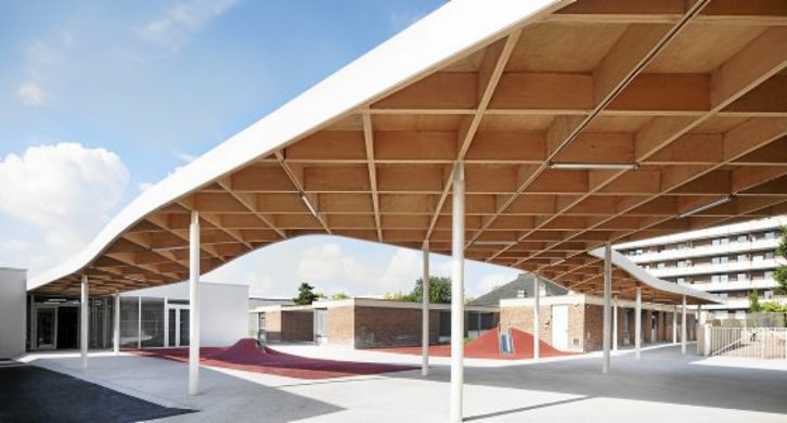 Uno de los problemas principales surgidos en la nueva pandemia viene dado por la falta de espacio lectivo que permita cumplir unos ratios más amplios de metros cuadrados por estudiante. En ese sentido, el ejemplo del estudio parisino SAM Architecture, liderado por Stefan Mathhys y Boris Scheneider, crea una solución práctica y bella; la ampliación de la escuela Charles Chaplin de La Courneuve, en el Estado francés, fue un proyecto iniciático de este estudio, especializado en dotaciones públicas. En él, se amplía la escuela existente creando una zona de comedores y cocina, comunicados todos mediante un patio cubierto.