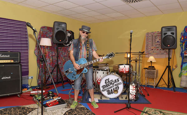 El lugar elegido para el encuentro es su local de ensayo. Es la auténtica guarida del pirata. El suelo está cubierto por infinidad de alfombras recorridas por serpenteantes cables y de donde van emergiendo amplificadores, micrófonos y diversos instrumentos, como una batería, varias guitarras o un piano. Todo ello enmarcado por coloristas telas con motivos tribales, calaveras mexicanas y emblemas piratas que se ven iluminados por varias lámparas que aportan calidez a un ambiente que emana creatividad.