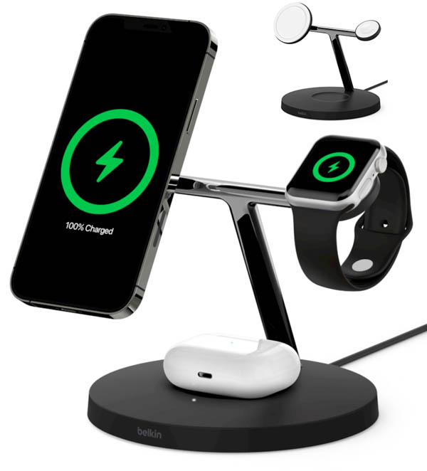 Con los últimos productos de Apple también llegan muchos accesorios compatibles, como este Boost Charge Pro, un soporte de carga inalámbrica 3 en 1 que utiliza la tecnología magnética MagSafe para recargar un iPhone 12, el Apple Watch y los Airpods a la vez.