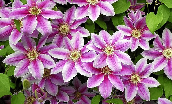 La ventaja del cultivo de las clemátides, Clematis, es conseguir muchas flores en muy poco espacio. Les gusta estar en un jardín pero se adaptan a lugares pequeños como balcones, tiestos y jardineras. El defecto que se les atribuye son esas ramas largas y desgalichadas, con solo tres flores en su extremo, que se pueden evitar hasta conseguir ramas compactas y floridas con una poda cuidadosa.