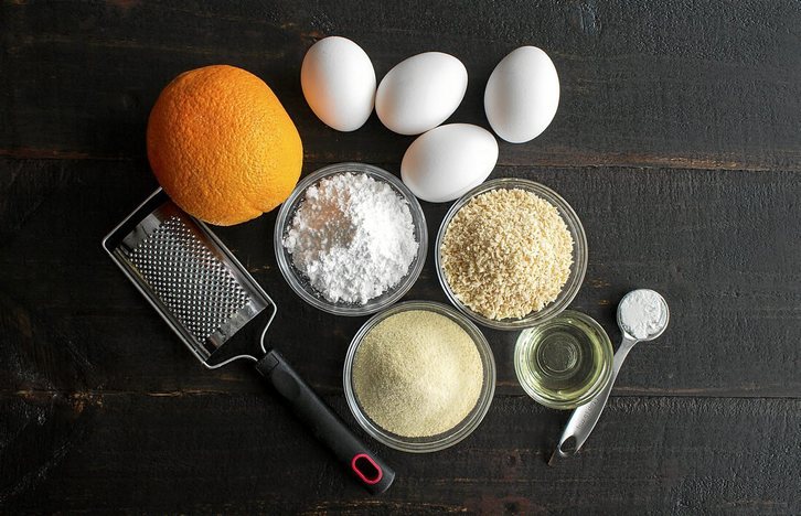 • 8 yemas • 2 huevos medianos • 150 g de azúcar • 60 g de harina • Una naranja • Sal.
