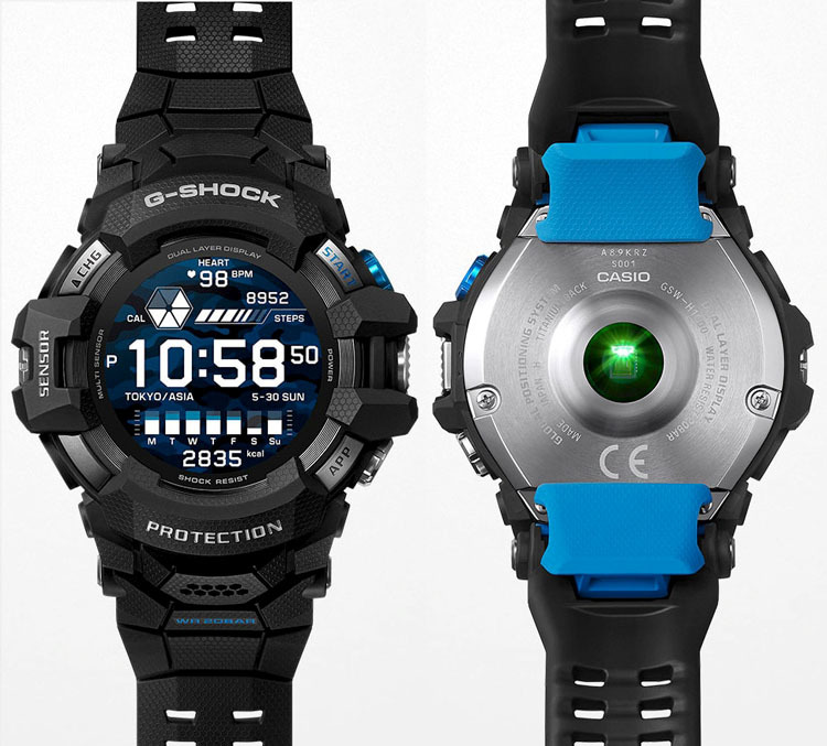 Es el primer reloj de la serie G-Shock de Casio equipado con el sistema operativo Wear OS, y llega con una pantalla táctil a color, conectividad WiFi y Bluetooth, los habituales sensores de ritmo cardíaco y consumo de calorías, GPS, brújula, altímetro, mareas y fases lunares.