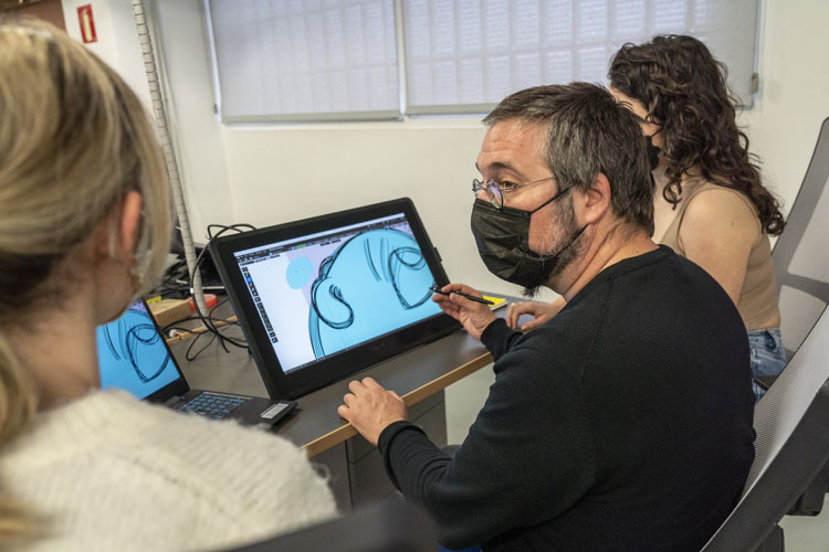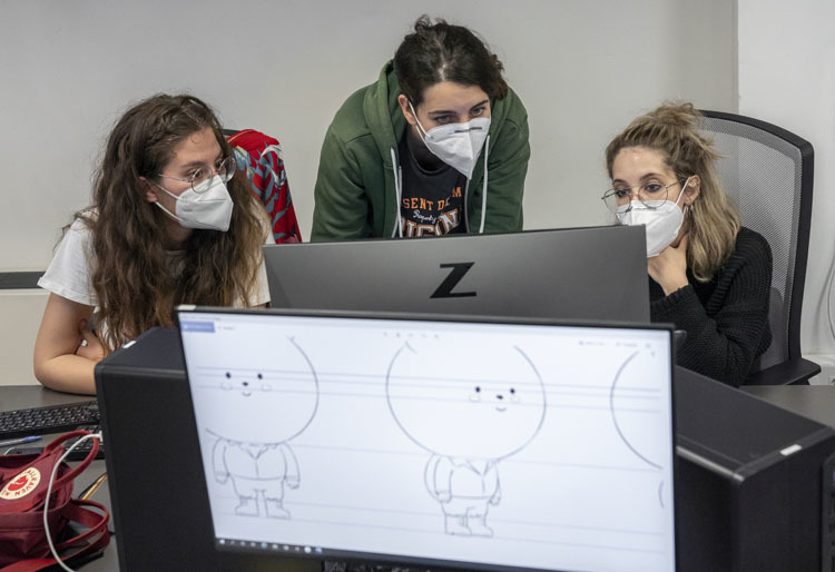 Dana forma parte del equipo de Clean-up –hay que hacerse un master para aprender la terminología del sector– que coordina la leonesa Estefanía Romón Villalobos. «El animador es el que da vida al movimiento de los personajes. Él lo hace de una manera más ‘sucia’, y aquí lo que hacemos es pasarlo a limpio», explica Estefanía. Recuerdan a los escribientes de la Edad Media, porque exige precisión y atención al detalle, aunque ellas lleven mascarilla y sean de lo más contemporáneas. Le pedimos a Dana que nos dé su versión de “Unicorn Wars”: «Son unos ositos amorosos, super cuquis que, en realidad, tienen unas ambiciones muy oscuras, porque se supone que creen en una leyenda según la cual, para mantenerse como ositos amorosos, tienen que matar. Y que un osito mate a un unicornio es muy heavy. Tienen una estética adorable, que te puede engañar, pero luego son psicópatas». Dana estudió un Máster de Animación en la Universidad Politécnica de Valencia, donde coincidió con Raquel, la otra valenciana del grupo. Ha trabajado, entre otras, en “Klaus” (2019), la multipremiada película de Sergio Ramos. Estefanía viene de Bellas Artes y en su currículum está otra grande: “Buñuel en el laberinto de tortugas” (2019), de Salvador Simón, versión del cómic publicado por la bilbaina Astiberri. «Mi madre siempre me decía: ‘¿Cuándo vas a dejar de ver dibujos?’ Antes solía acompañar al cine a mi prima pequeña, pero ahora incluso está bien visto», explica Estefanía.