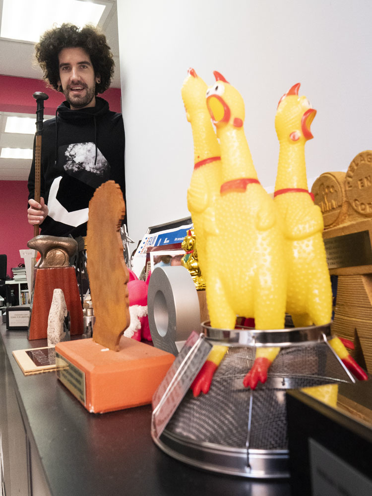 Iván Miñambres posa con los premios obtenidos. Fotografía: Monika del Valle / Foku