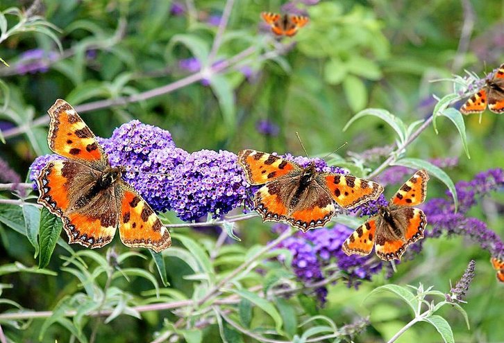 La buddleia es una planta arbustiva vivaz, que puede alcanzar cuatro metros de altura y casi de igual diámetro. Florece de julio a setiembre, de sus tallos largos arqueados con hojas caducas lanceoladas cuelgan panículos de flores fragantes de tonos del rosa a violetas azulados y por su parecido con las lilas se la conoce también como lilas de verano.
