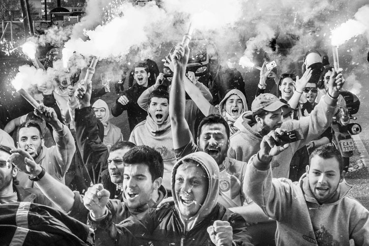 Estas imágenes están tomadas durante una década en ciudades como Atenas, con protagonismo para los seguidores de Olympiakos; athleticzales en distintos lugares, aficionados en Dortmund, Johannesburgo, Melbourne, Tokio, Ioannina, Granada, Sevilla, Valladolid... En realidad, como usted dice, las hinchadas o los admiradores no son tan diferentes, ¿o sí?