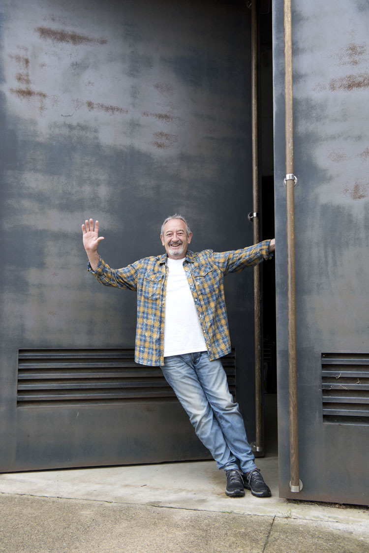 Es un día fresco y lluvioso. La cita es a las 11.00 en la bodega K5, en las faldas de Aia. Un camino serpenteante, bajo el mandato del GPS, conduce el coche hasta una valla. Timbre y la puerta se abre. Un espectacular edificio de carácter moderno aguarda frente al parking. De no ser por la bruma que se acerca cada vez más desde la costa, el ratón de Getaria nos hubiera recibido con un guiño. Una lástima, aunque lo que nos interesa está aún por llegar. Cerramos la cremallera del chubasquero. Parece mentira que estemos en verano. Varias filas de vides aguardan silenciosas. Conny, nuestra fotógrafa, prepara la cámara y lanza unos disparos a modo de ensayo. Suena el timbre de la valla, baja un coche blanco, aparca... y ahí está. Con aspecto jovial y juvenil. Sencillo. Vaqueros, zapatillas, camiseta y camisa abierta. Llega Karlos Arguiñano, y comienza el espectáculo (y una buena sesión de risas).