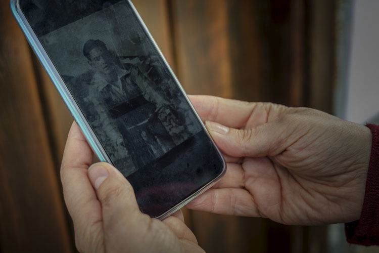 Markinatik 17 urterekin frankistek  frontera eraman zuten Alexander Aretxabaleta Goikoetxea, bizikleta gainean, bere loba Betikoneren telefono mugikorreko argazkian.