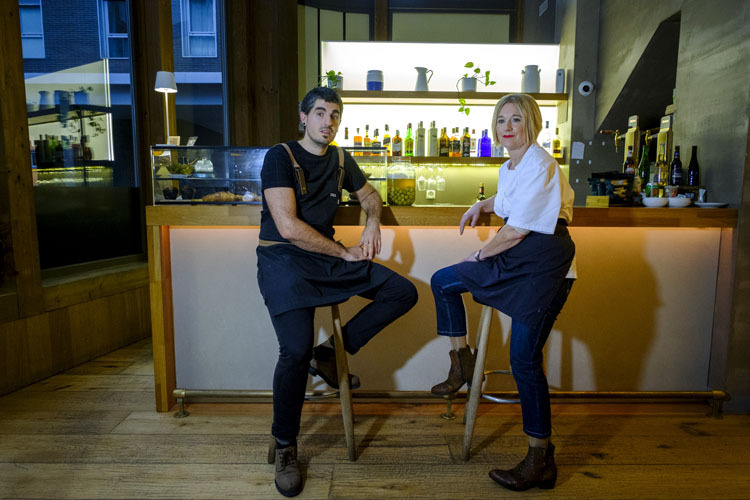Profesionales de la cocina: ella, bilbaina residente en Hernani, se encarga del comedor de una guardería de Errenteria, mientras él regenta el Ama Taberna de Tolosa y el Enea de Donostia –ubicado en los bajos del hotel Zenit en el barrio de Morlans–, un acogedor restaurante donde se produce esta entrevista y su sesión fotográfica. Una le da a la comida del día a día y el otro pretende sacar al personal de la zona de confort. Ambos tienen formación, aunque ninguno de los dos cuenta con antecedentes familiares en la profesión, pero sí en las cocinas de casa con esas madres y abuelas que les contagiaron una pasión que, lejos de apagarse con el tiempo, va in crescendo.