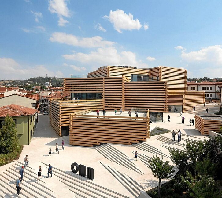El nuevo equipamiento se convierte en uno de los mayores de la provincia de Odunpazari, en Anatolia central, alcanzando aproximadamente un área de 4.500 metros cuadrados. El arquitecto japonés ha vinculado el edificio a referencias históricas de la región de Odunpazari, declarada Patrimonio de la Humanidad por la UNESCO, que significa literalmente “mercado de la madera” en turco. Una visión rápida sobre el edificio, ya deja de manifiesto la importancia de la materialidad y de la madera en su formalización.