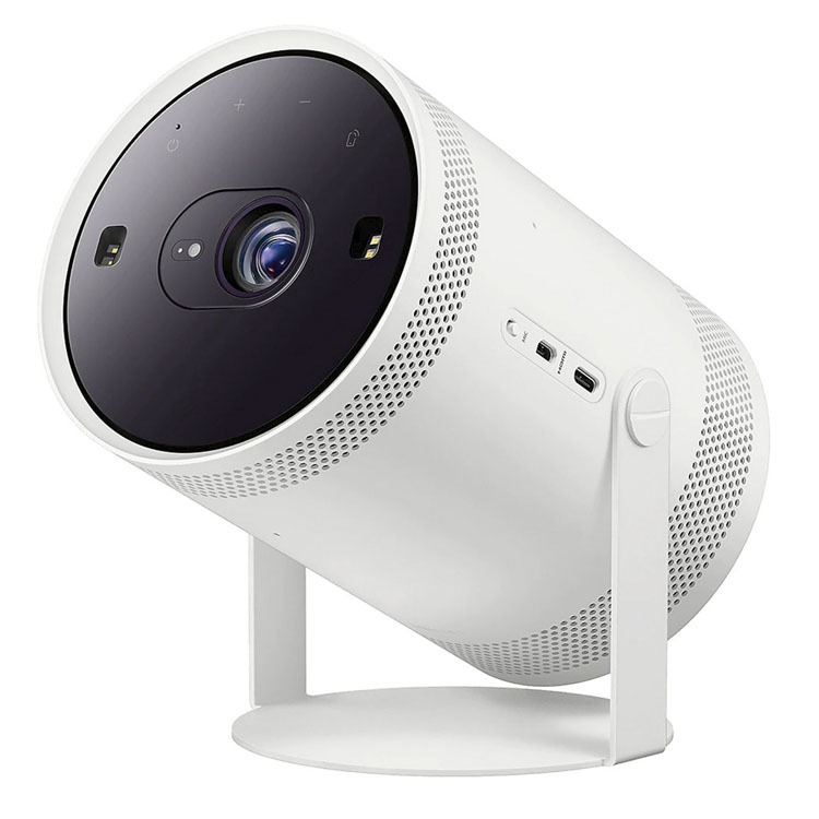 Samsung también acaba de presentar este proyector portátil que además funciona como Smart TV y altavoz inteligente todo en uno. Proyecta en pantallas desde 30 a 100 pulgadas, enfoca y nivela la imagen automáticamente y es compatible con baterías externas USB-PD.