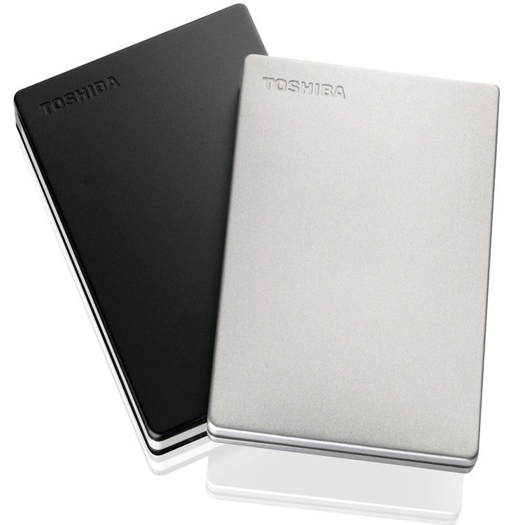 Hasta 2 TB se pueden almacenar en este disco duro externo de Toshiba que además aporta un toque elegante gracias al diseño ligero y muy fino de su carcasa fabricada en aluminio que se puede adquirir en color plateado o negro desde unos 65 euros para el modelo de 1 TB.