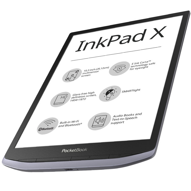 Equipado con una gran pantalla táctil E-Ink Carta Mobius de 10.3 pulgadas y resolución HD, batería de 2000 mAh con autonomía para un mes, 32 GB de capacidad y WiFi, este enorme lector de libros electrónicos de PocketBook mantiene sin embargo un peso de solo 300 gramos.