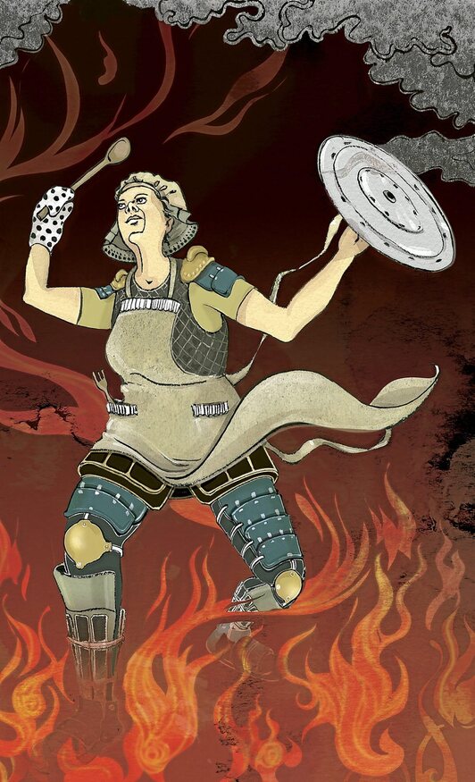 Jakina da, lana ez da bukatzen harrikoa egin arte. Aizto, labana, edalontzi, erretilu, gopor, kopa, katilu, koilara, kazuelatxo, pitxer, plater, sardexka, ontzi eta gainontzeko jangelako baxera. Gero sukaldeko ontziteria, azpil, arrabol, burruntzali, botila-irekigailu, eltze, ohol, iragazki, kazola, lapiko, sukaldeko laban, zali, zartagin. Baita sukaldea eta tresneria ere, apal, mahai gain, hozkailu, labe, parrilla, su, suburu, ke-erauzgailu eta zoru.