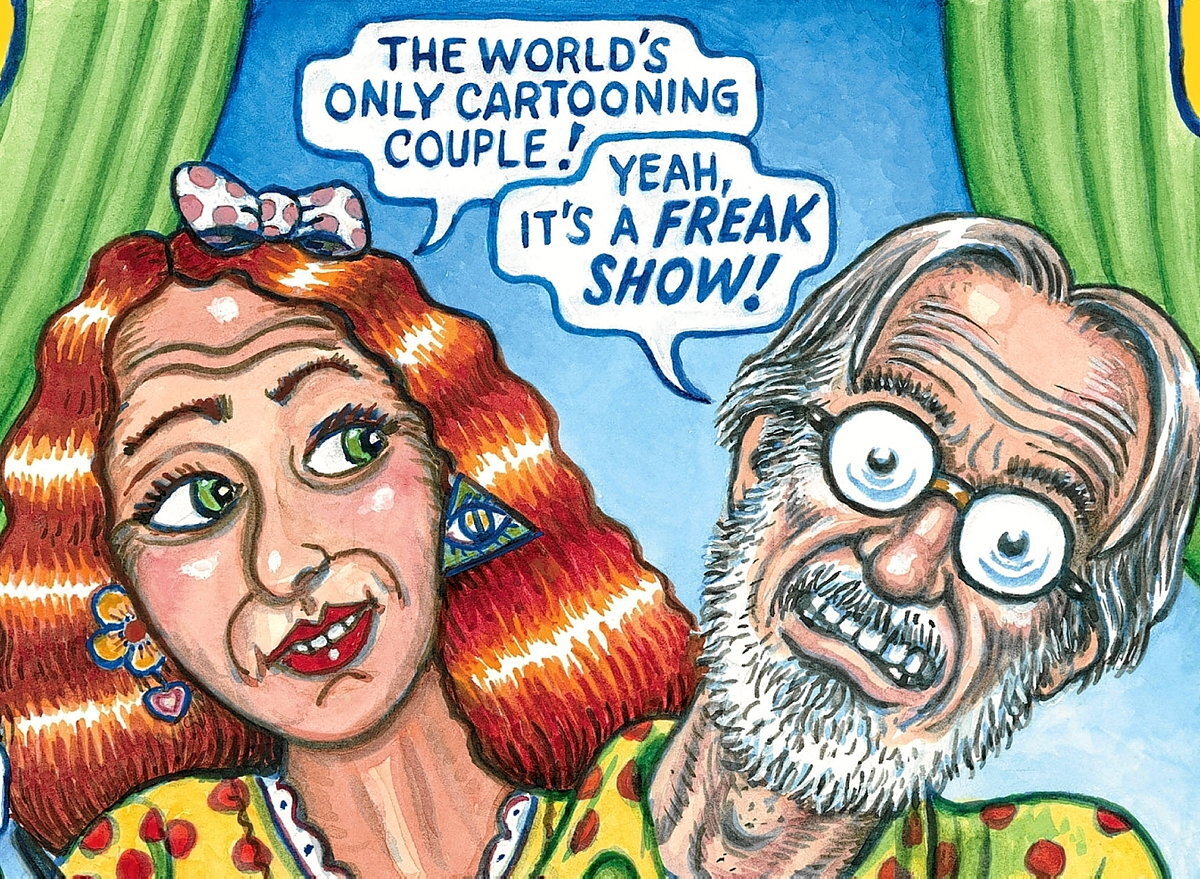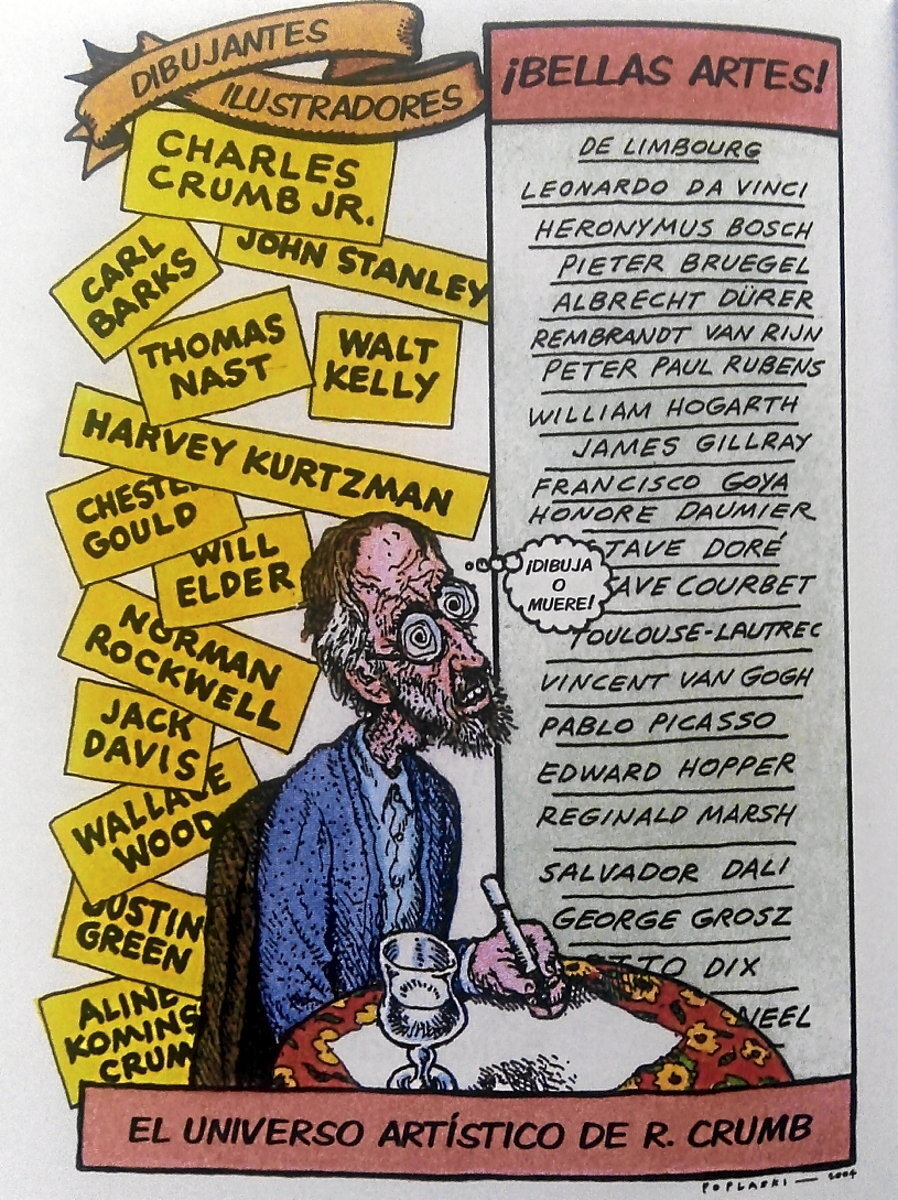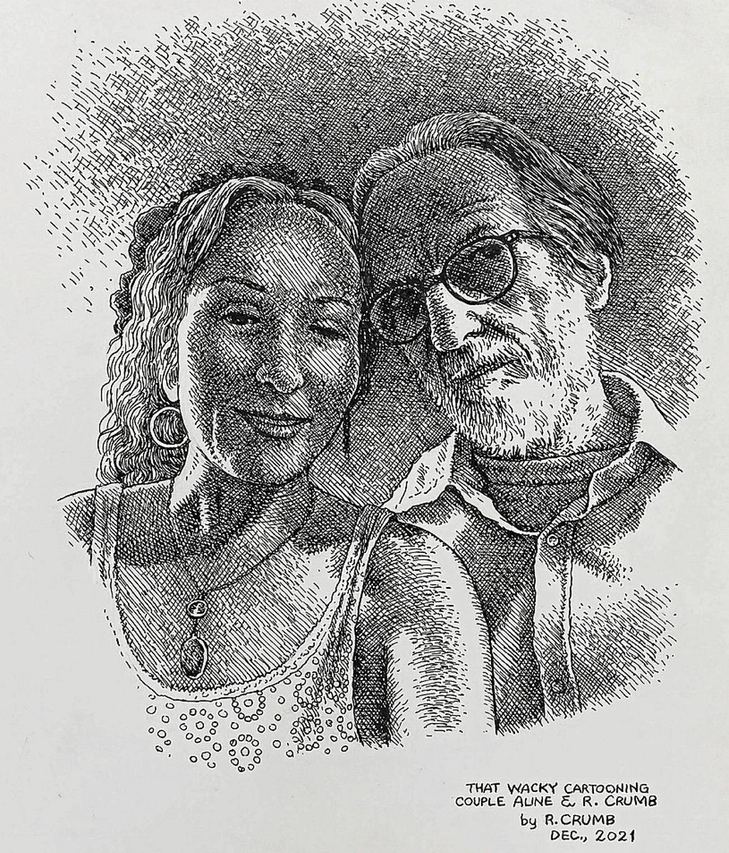 2023 ABU. 13 PAREJA COMIQUERA, LÚCIDA Y PROVOCADORA Robert y Aline Crumb, iconos contraculturales Considerado como autor clave del nuevo cómic surgido en el underground contracultural de los sesenta, Robert Crumb compartió relación afectiva y oficio con la también dibujante Aline Kominsky, fallecida el año pasado. Fueron un dúo lúcidamente imaginativo e independiente. Sendas antologías redescubren su andadura vital y artística. Fotografías: Teddy Wolff Iñaki Zaratiegi Al cómic le costó ser aceptado como “noveno arte”, pero sigue sorprendiendo por original y atrevido. Entre sus protagonistas más influyentes sobresalen los pioneros de la explosión contracultural del siglo pasado. La escena usamericana en particular aportó un rebelde grupo de dibujantes. Robert Dennis Crumb (Filadelfia, 1943) fue uno de los precursores de los tebeos provocadores, sexuales y hasta pornográficos, y a la vez cultos y progresistas, que revolucionaron el medio comiquero y la cultura en general. Con más de cuarenta años en activo, su firma es desde hace tiempo un rentable producto comercial, aunque ha mantenido su particular independencia. En esta pasada primavera ha visto la luz la autobiografía “Memorias de R. Crumb, remembranzas y otras chanzas”, elaborada por el también dibujante Peter Poplaski y publicada en Libros del Kultrum. Es la reedición de “R. Crumb. Recuerdos y opiniones” (Global Rhythm, 2008). Poplaski adelantó en 1998 el análisis “The R. Crumb Coffee Table Art Book”. Los Crumb compartieron primero su amor por el cómic underground y después una vida como pareja sentimental y artística. Acabaron protagonizando sus propias historias, irónicamente autobiográficas. El libro es un equilibrio entre texto y dibujo con más de 50 fotografías personales y 300 ilustraciones. Más un CD de melodías interpretadas por Robert al banjo y guitarra, con sus distintas formaciones instrumentales de sonidos tradicionales. Tras su colorismo y desparpajo, realiza personales análisis sobre la existencia humana. El influyente dibujante se casó en 1978 con Aline Goldsmith (Nueva York, 1948), convertida por decisión propia en Aline Kominsky-Crumb por los apellidos de su primer marido y el de Robert. Fue también una precursora del cómic underground, pintora y editora; falleció el pasado noviembre. Ha querido la casualidad editorial que la reedición de las memorias de Crumb haya coincidido con la publicación de la muestra integral en solitario de su mujer “Querido Callo. Comida, sexo, muerte, felicidad, amor, dolor” (editorial Reservoir Books). Es la primera traducción y edición en lengua no inglesa de su trabajo “Love That Bunch”, de 2018. Bajo ese seudónimo de Callo, sus dibujos, mayormente en blanco y negro, tienen unos trazos más difíciles de seguir y son tiras de índole muy personal y autorreflexivo. Poco le ayudó ser mujer en un gremio muy masculinizado. Y la sombra de su influyente marido ha sido siempre muy alargada. Su producción fue además mucho más reducida que la de Crumb. No ha tenido en consecuencia ni su reconocimiento ni éxito comercial. Pero fue una original pionera del cómic autobiográfico y autocrítico, en clave de irónico libertarismo femenino CUENTOS DE HADAS Robert fue uno de los cinco hijos de un militar de carrera y una madre adicta a los tranquilizantes y «completamente chalada», según el propio dibujante. Una familia desestructurada de ambiente católico conservador. Su amor por las historietas le viene de joven, cuando husmeaba en tiendas destartaladas preguntando por nuevos “libros de risa”, como entonces los llamaban. Su hermano mayor, Charles, suicidado en 1992, le empujó a dibujar para los fanzines que publicaban artesanalmente. Retrato de Aline y Robert, realizado por el propio Crumb y fechado en diciembre de 2021. Robert es radical sobre su infancia. «No entendíamos que vivíamos en una cultura comercial de bienes de consumo. Todo lo que había a nuestro alrededor se había comprado y vendido. Como estadounidenses de clase plató de cine en el que los valores conscientes que se nos inoculaban solo eran una parte de la película (…) vivimos cercados por la ilusión, cuentos de hadas concebidos por profesionales (…) los media crean mundos de fantasía y cuando tratamos de vivir en ellos no entendemos por qué no funciona. Una promesa que nunca se cumple». Y añade: «Fuimos la primera generación del televisor, crecida en un mundo moldeado por zafios programas, películas, tebeos, canciones populares y anuncios publicitarios. Mi cerebro es un formidable vertedero donde se acumula esa bazofia y de ahí sale principalmente mi trabajo». HUIDAS En 1962 no aguantó más la mala relación de sus padres y se trasladó a Cleveland, trabajó elaborando tarjetas de felicitación y en 1964 se casó con Dana Morgan. La vida de pareja le abrumó, entró en el LSD y la marihuana y huyó en 1967 “para unirse a los hippies”, con su mujer embarazada. Jesse Crumb nació en la primavera de 1968. Robert colaboró en publicaciones underground y dio el salto al San Francisco de la contracultura donde editó “Zap Comix”, pionera del cómic alternativo, que se desmarcaba radicalmente de lo infantil y el estilo superhéroes para habitar un mundo alternativo con el sexo como vehículo central. La publicación fue encuentro de nuevos dibujantes y Crumb creó una serie de personajes hoy ya clásicos: Mr Natural, Gato Fritz, Angelfood, Mr. Snoid... Página del libro “A Short History Of America”. El crítico Robert Hughes escribió que «el material de Crumb proviene de una honda consciencia del absurdo de la vida humana. A cierto nivel psicológico dejan de existir los héroes, los villanos, no hay heroínas e incluso las víctimas resultan cómicas”. ALÉJATE DE LAS FIESTAS Crumb vivió altibajos familiares y nuevas huidas, en 1973 su relación naufragó definitivamente y no vio a su hijo durante siete años, aunque 