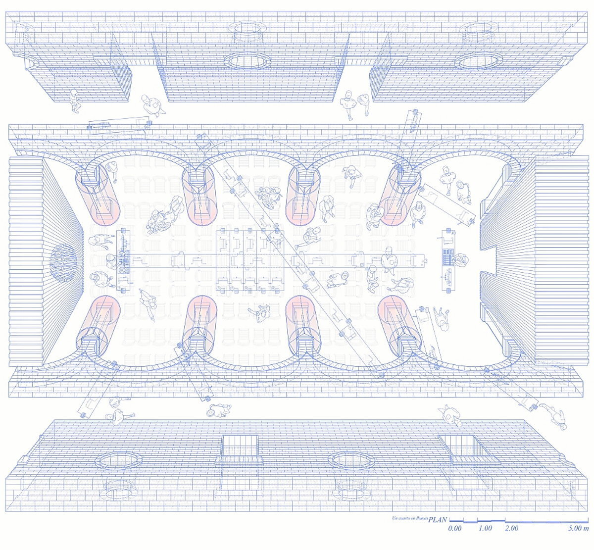 Nola esku hartuko zenukete babestuta dagoen ondarean, kreatibitatea eta ilusioa galdu gabe? Lys Villalba eta Lluis Alexandre Casanovasen proiektuak -antzina koartelak ziren Condeduque eraikinean kokatzen denak- bizia ematen dio ondarearen ikuspuntutik babestuta dagoen erabilera anitzeko aretoari.