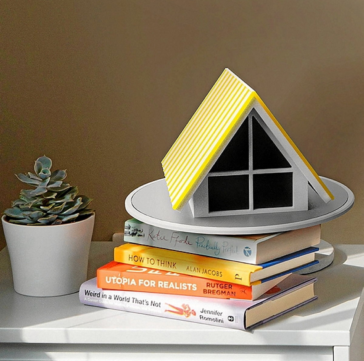 En la era del Kindle, el libro de tapa dura puede parecer prehistórico, pero las personas lectoras y amantes del papel sabemos que no lo es. Tanto Kindle, tanto Kindle... ¡Que vivan los libros y las bibliotecas! Arengas papeleras aparte, no siempre puedes sentarte con tu libro favorito durante el día y nuestro momento mágico suele ser en la cama o en el sofá, con una buena luz y tranquilitas. Para elevar el placer de leer a un estado en el que un libro en sí mismo es la fuente de luz, Boof es una lámpara de lectura con forma de casa, que consta de un disco metálico como base que se ilumina y una parte superior en forma de techo en la que dejar el libro. La sutil luz en la ventana y la planta baja de la casa se iluminan cuando se coloca el libro en la parte superior. La luz es suave e inspiradora, lo que te permitirá centrarte en la letra que estás hojeando en el ambiente oscuro de tu habitación. Está diseñada por Eunae Ko and Janchi.