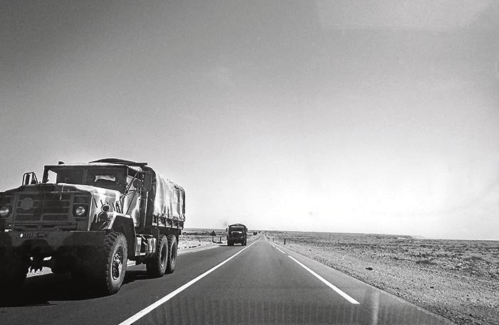 El Sahara ocupado es la zona más militarizada. En los controles de carretera es normal que pidan incluso el teléfono a las personas y obligan a desbloquear los móviles para ver a quién han llamado o sobre qué se habla en los mensajes. Es imposible moverse por carretera sin ser controlado.