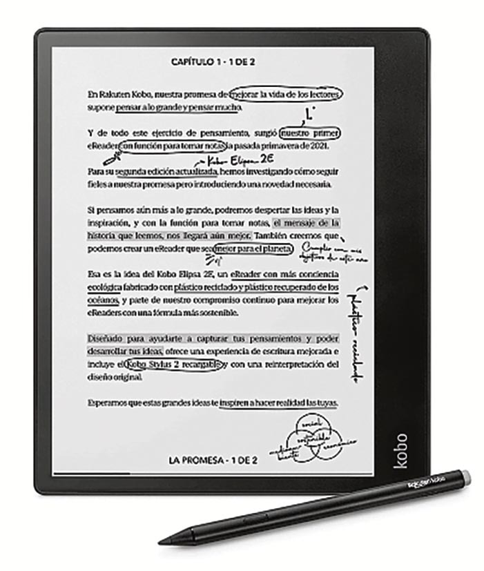 La última generación del eReader de Rakuten dispone de un panel táctil E Ink 1200 de 10,3” y un lápiz óptico incluido que permite tomar notas. Cuenta con conexión Wi-Fi, Bluetooth y USB-C, además de compatibilidad con hasta quince formatos diferentes incluyendo audiolibros.