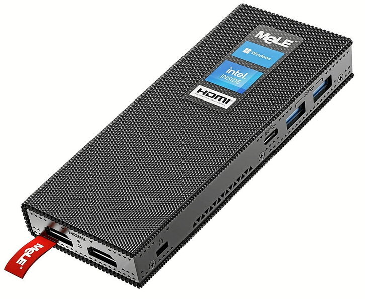 La firma MeLE ofrece este mini PC de formato stick con suficiente potencia como para el uso diario en el hogar y no llega a los 150 mm de largo, por lo que también podemos transportarlo fácilmente. Cuenta con una gráfica Intel Xe LP junto con un procesador Intel N100 y, en su versión más potente, dispone de memoria RAM LPDDR4X de 16 GB y almacenamiento de 256 GB eMMC ampliable, lo que ofrece una velocidad mayor de lo habitual en este tipo de dispositivos. Por otra parte, cuenta con un sistema de refrigerado sin ventilador, por lo que es muy silencioso. En cuanto a conectividad, tiene conexión Wi-Fi de doble banda, Bluetooth 5.1 y Ethernet, además de dos puertos USB tipo A, otro USB tipo C y dos puertos HDMI que permiten conectarlo a dos monitores de manera simultánea. Respecto al precio, lo tenemos disponible por solo 300€.
