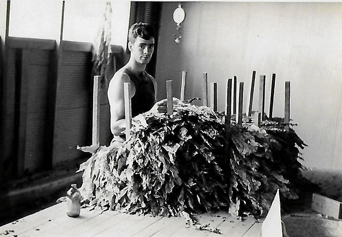 Jaime Aberasturi, trabajando en la selección de las hojas de tabaco.