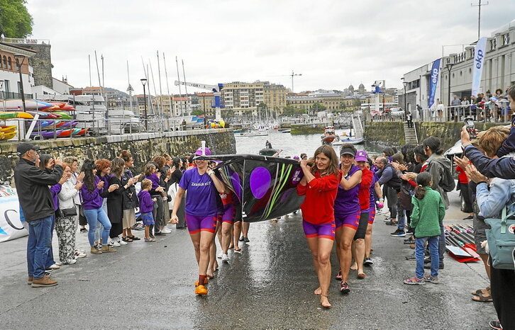 «La mayoría no habíamos hecho remo, pero tampoco vivíamos de espaldas al mar. Al final, en Ondarroa la mar está presente siempre. Todas hemos descargado en el puerto alguna vez y todas tenemos o hemos tenido alguien en casa que se ha dedicado al mar. Pero una de las cosas que queríamos reivindicar es que la mar, tanto en lo que se refiere a la actividad deportiva como para otros quehaceres, también es un lugar donde caben las mujeres. Y más, como en este caso, las mujeres que ya empiezan a tener cierta edad, cuando en esta sociedad las mujeres que no son jóvenes ni perfectas, ya a partir de cumplir los 45 años, parece como que no existiéramos», añaden las protagonistas de esta historia. Una reivindicación que en su llegada a Orio subrayaron con la lectura de un comunicado a este respecto y que, como explica Nerea, «es un acto que nos ha ido empoderando, en cuanto que nos ha mostrado a nosotras mismas lo que somos capaces de hacer».