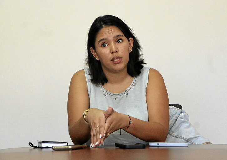 Aunque una leve gripe la obliga a disculparse al inicio, María Celeste Maradiaga recibe a 7K con una sonrisa serena en un local de Tegucigalpa. La tarde es densa, y el calor de julio invita a servirse un vaso del dispensador de agua fría ubicado junto a la entrada. Con apenas 26 años, Maradiaga forma parte desde hace casi cuatro de «Contracorriente», uno de los pocos medios independientes que resisten en Honduras.