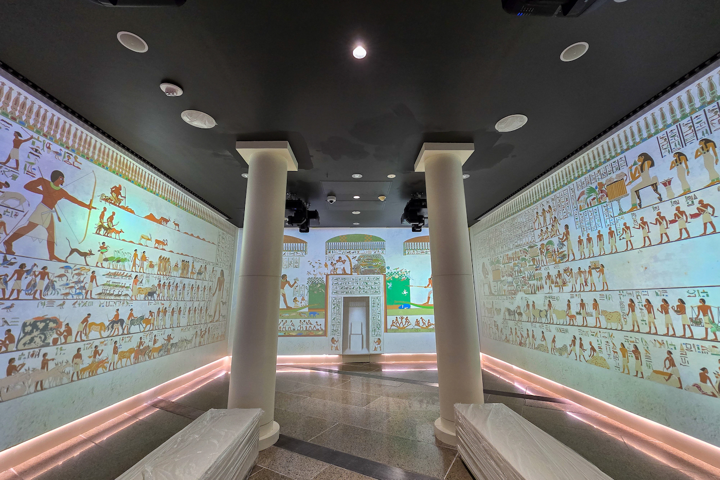 Aldi berean, Keops, Kefren eta Mizerinorekin lotutako ibilbide sinbolikoa proposatzen dute aretoek, bidaiaren helmugan piramideak azaltzen baitira kristalezko irudian. Helburua da tradizio historikoa eta teknologia aurreratua uztartzea, museoak eskainitakoa pieza erakusketa soila izan ez dadin.