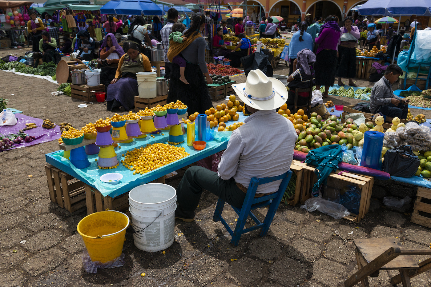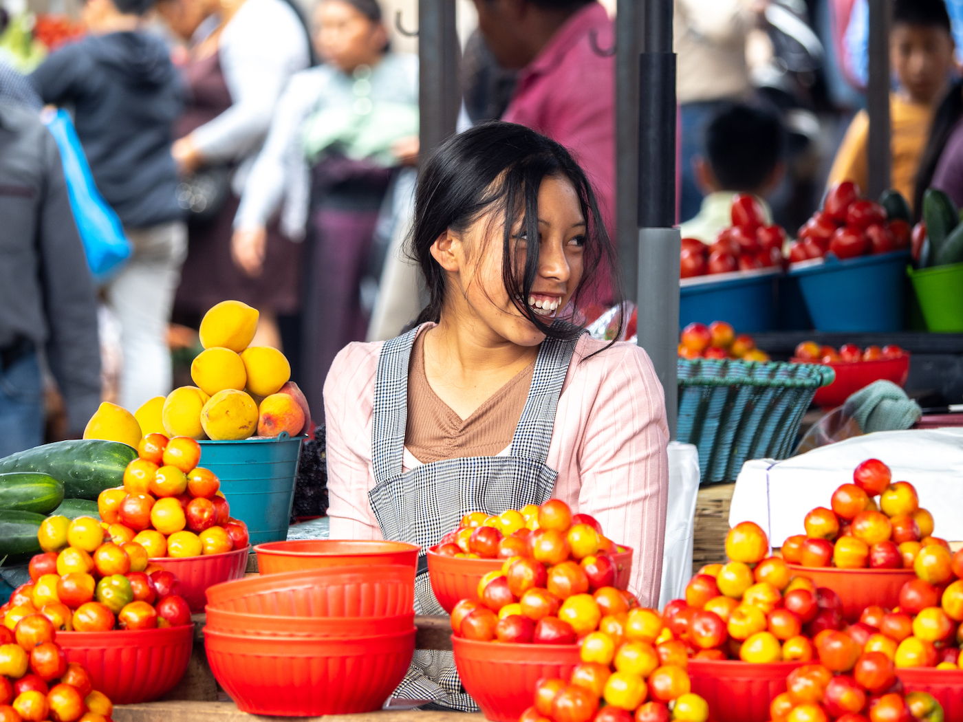 Gazte bat, merkatuan fruta saltzen. (Sahats Igoa Lopez)