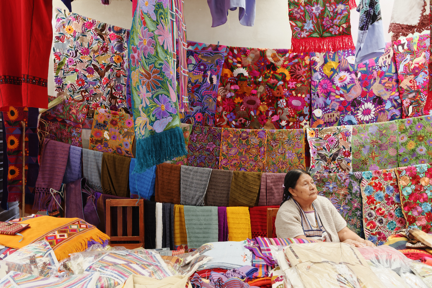 Emakume bat oihalak saltzen merkatuan. (Steve Bramall | Getty Images)
