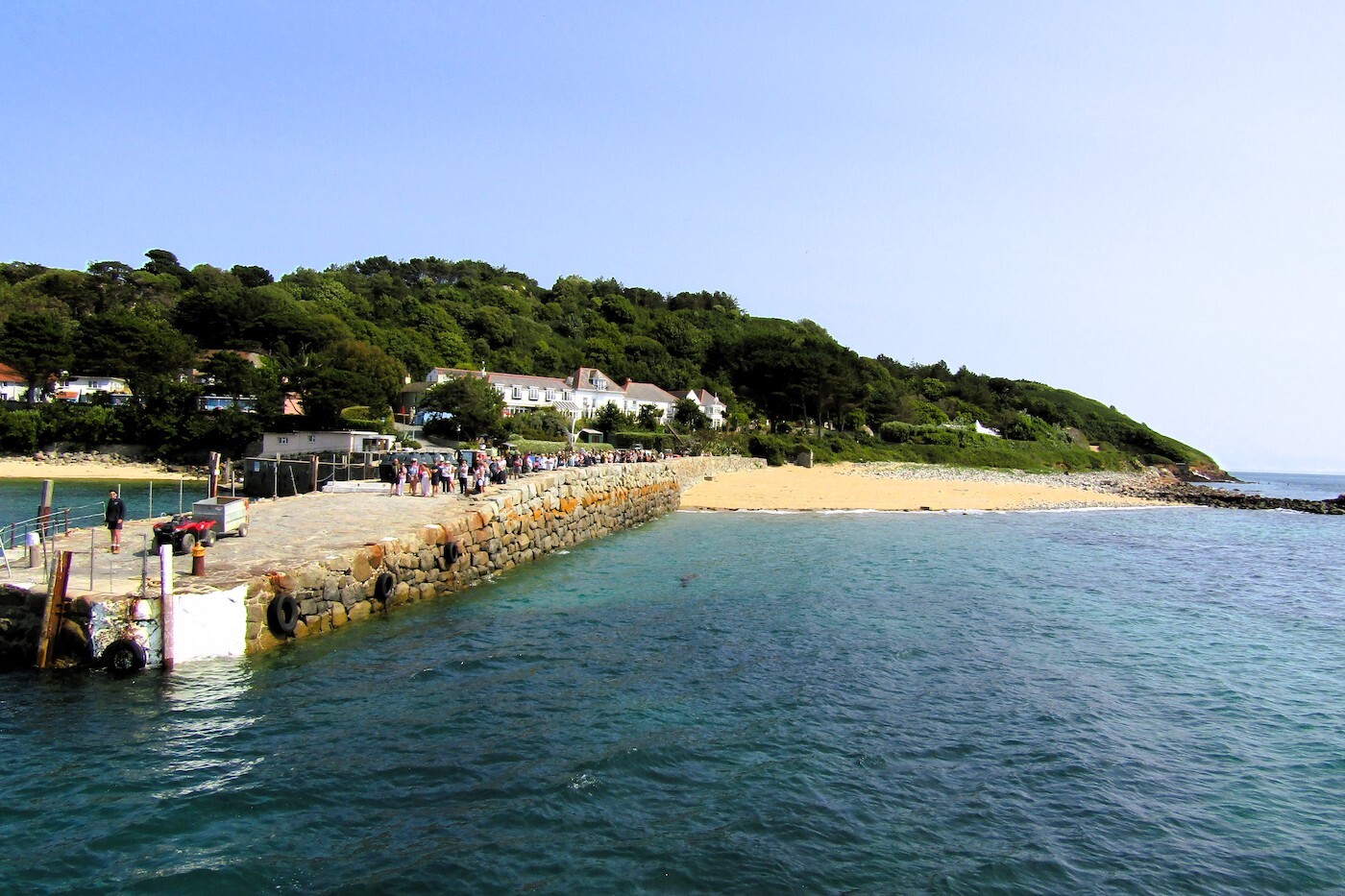 Herm-era doan ferrya hartzeko unea da. Hiriburuko gotorleku handiaren beste ikuspegi bat ematen du badiatik urruntzen garenean. Itsasaldi laburra da irla txikira iristeko. Bertan, dozena erdi auto egongo dira gehienez ere. Hala, oinez egin dugu irlako itzulia, iparretik Mouisonniere hondartzara iritsita eta Pierre aux Rats dorrean ekialdeko kostara doan bidea hartuta.