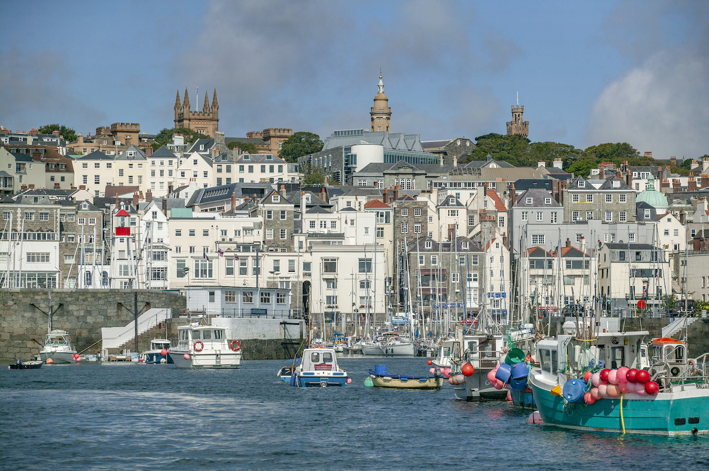 Guerneseyko hiriburua, St Peter Port, portutik ikusita. (Uwe Moser | Getty Images)