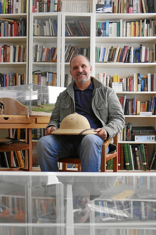 Gasteizko kaleetan ibili gara pasieran. Familiaren liburutegia erakutsi digu, esploratzaile eta bidaiariei buruzko milaka liburu biltzen dituena. Batzuk XIX. mendean argitaratutakoak dira. Gasteizko ‘Círculo Vitoriano’tik pasatu gara. Hantxe sortu zen La Exploradora, ‘Ezezaguna ezagutu’ lemapean jaiotakoa. Florida parkean amaitu dugu paseoa, hain zuzen ere, Manuel Iradierren estatuaren ondoan. Bertan hasi dugu elkarrizketa.