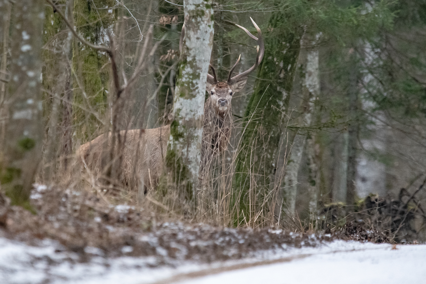 Erreserba oraindik itxita dagoenez, errepidearekiko paraleloan doan ondoko baso pista hartu dut. Neguko ilajearekin eta burua tente duela, orein ar handi bat igaro da aurretik. Intuizioz edo, ezkerrera begiratu dut eta hantxe beste bat, zuhaitz baten atzetik neuri begira.