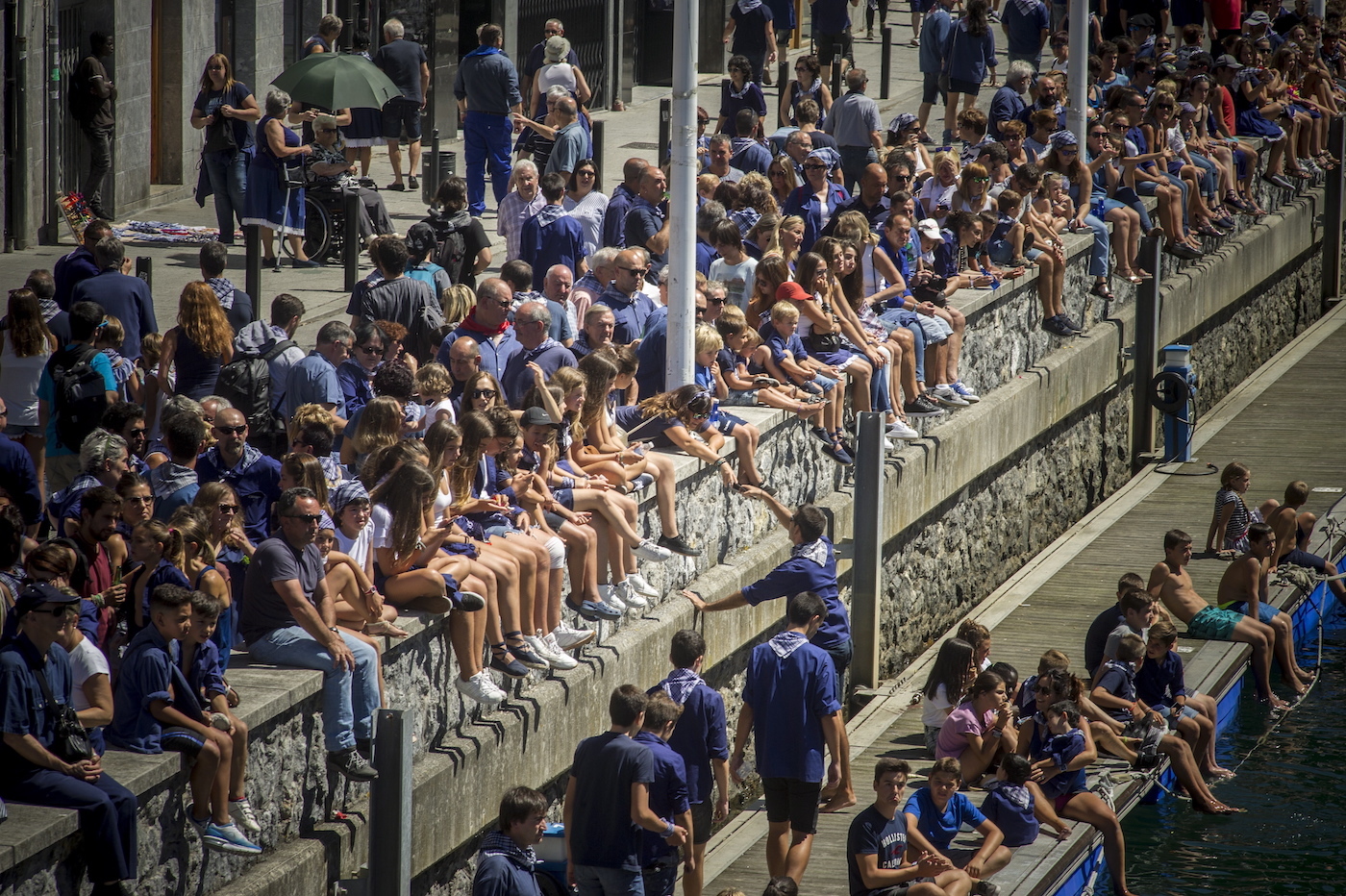 Portua mahoi kolorez tindatzen da. Uretan dozenaka batel daude, egun horretarako propio dekoratuta. Kuadrillak izaten dira protagonista nagusiak.