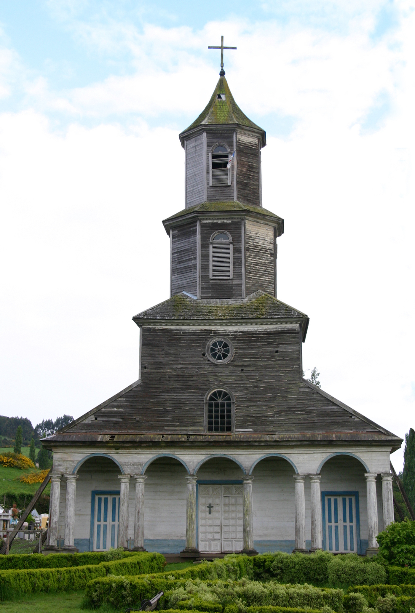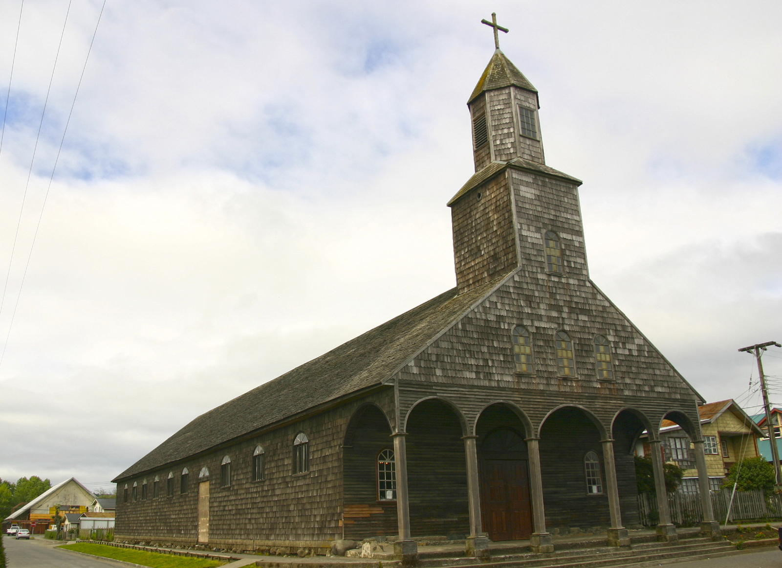 Uharteko elizarik zaharreneraino jarraituko dugu. Berau da, aldi berean, herrialde osoko zurezko elizarik zaharrena: Santa María de Loreto, Achao-n. Jesuitek eraiki zuten 1730ean, baina frantziskotarrek amaitu zuten, 1767an lehendabizikoak kanporatu ondoren. Dorrea geroagokoa da, XX. mendearen hasierakoa. Egitura klasikoa du, bost arku faltsu eta bi gorputzeko dorrea. Barruan, urrez estaliriko birjina titularraren tailua nabarmentzen da.