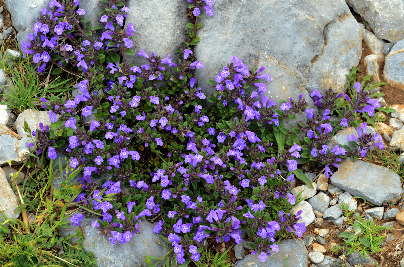 CLINOPODIUM ACINOS. Landare xumea da (4-28 cm). Loreak urdinak edo moreak dira, eta bi ezpain dituzte. Larre harritsuetan eta harrien artean bizi da eta erraza da ikusten gure mendi karedunetan. Lehortasunarekiko erresistentea denez, arrokaiak apaintzeko barietateak lortu dira xerolorezaintzan (ur gutxi kontsumitzen duena) erabiltzeko. Apiriletik irailera loratzen da.