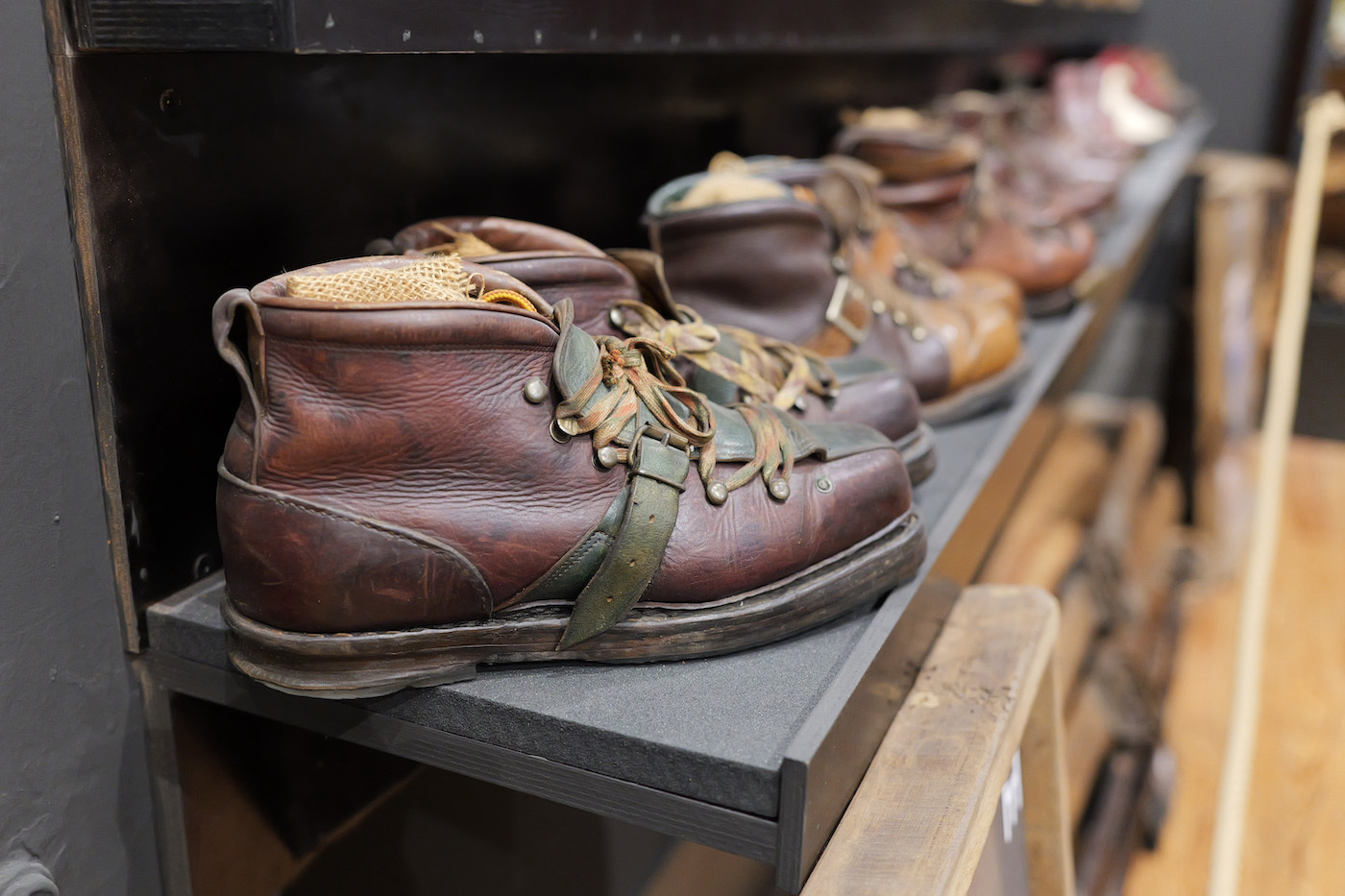 Alpinisten jantziek eta ekipamenduek hamarkadetan zehar izan duten bilakaera argi erakusten duten objektuak ikus daitezke, besteak beste, botak. (Gotzon ARANBURU | FOKU)PORRU BAT YOSEMITEN